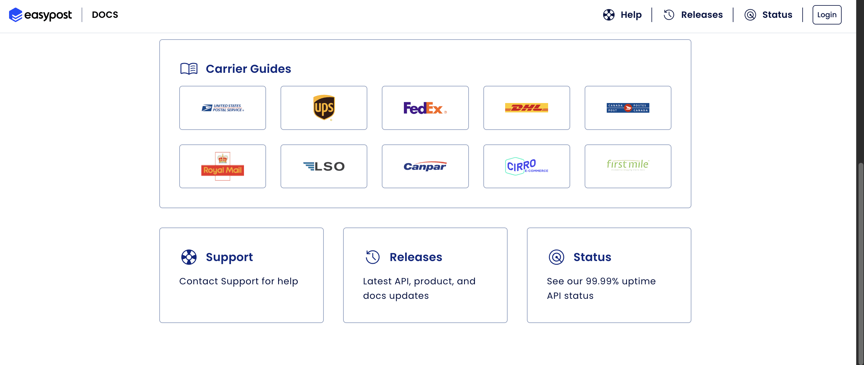 Integrated EasyPost API that handled carrier relationships on our behalf. Built client and server code for internal systems. Updated server APIs and libraries. Implemented rate shopping logic on backend so customers got best price without seeing complexity.